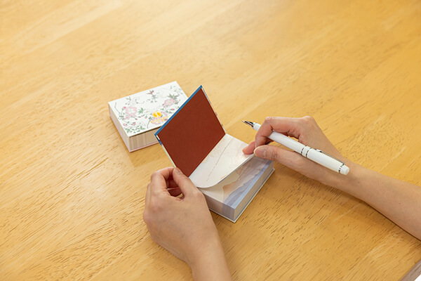 銀杏の木は大きく育ち、長生きするため長寿の象徴とされました。榛原に伝わる意匠を使った、机に置くタイプのメモパッドです。中紙にも柄が入った華やかな仕様です。