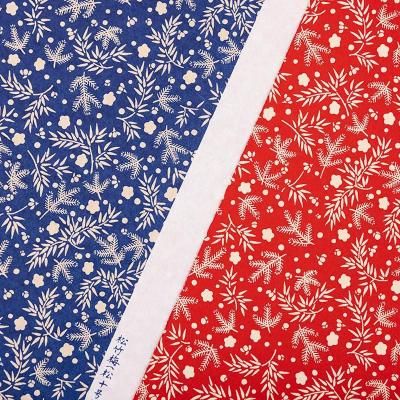 【松竹梅】は、古くから親しまれてきた吉祥紋様ですが、この千代紙では樹木の姿ではなく、花や、葉や実を全体に散らしたデザインとなっており「おめでたい事が皆様の間に広がりますように」という意味が込められています。