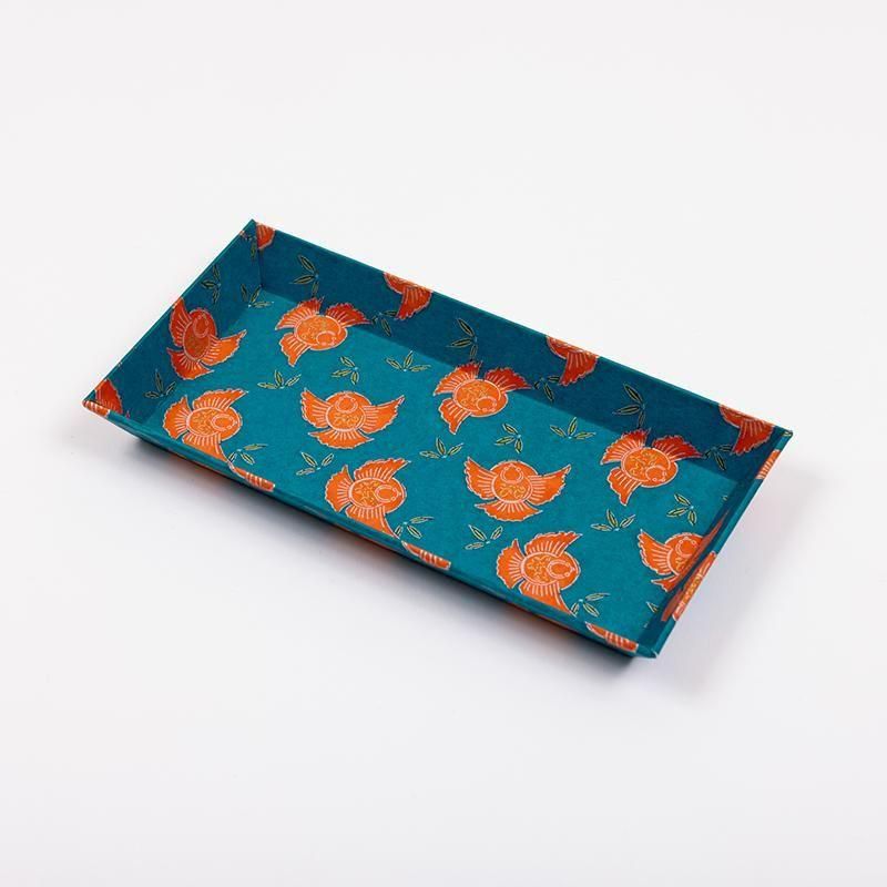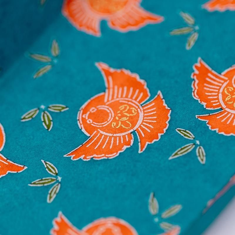 冬の寒さから身を守るため、羽の中に空気を含ませて膨らんでいるスズメの姿から「福良雀」と、めでたい文字を当てた文様。子孫繁栄や豊かさの象徴として、昔も今も愛されています。榛原千代紙で作られたトレーです。千代紙の華やかな色合いを日々の生活の中でお楽しみください。軽く丈夫なので、日本のお土産としてもおすすめです。
