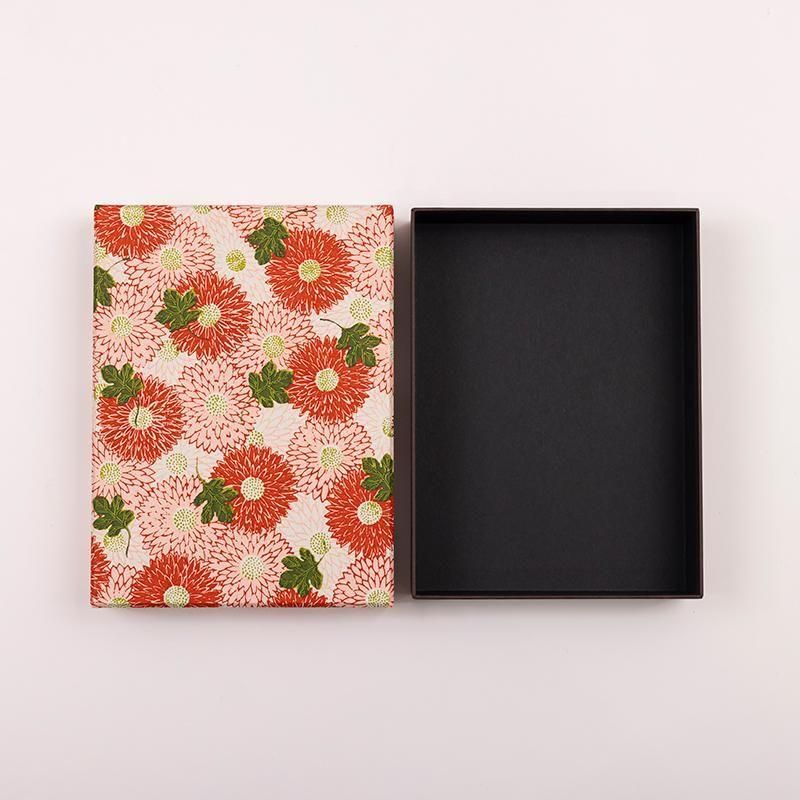 はいばら千代紙の蓋(上箱)と色和紙の身(下箱)で構成。柄物でありながらも落ち着きのある、上品な仕上がりです。