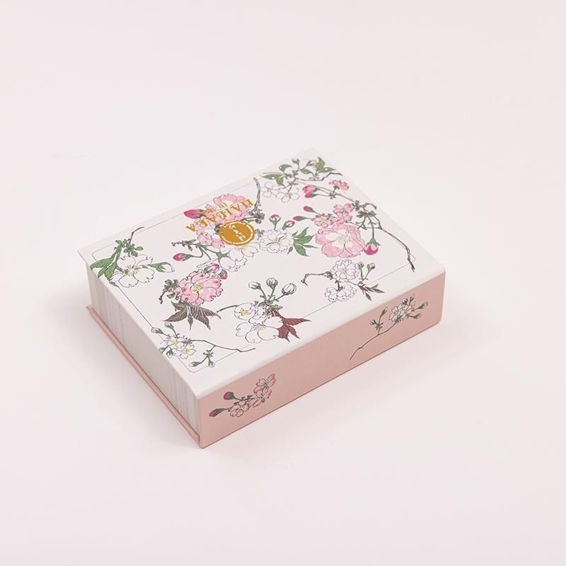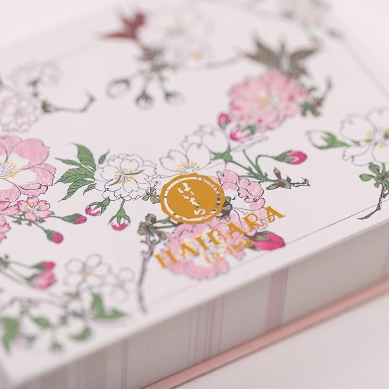 版画集『花くらべ』(明治24年頃、はいばら制作)には、咲き競うばかりに生命感をかがやかせる草花とともに人々の暮らしの風情を活写した作品の数々が収められています。古来より愛されきたる桜の開花には格別な喜びが想起されます。榛原に伝わる意匠を使った、机に置くタイプのメモパッドです。中紙にも柄が入った華やかな仕様です。