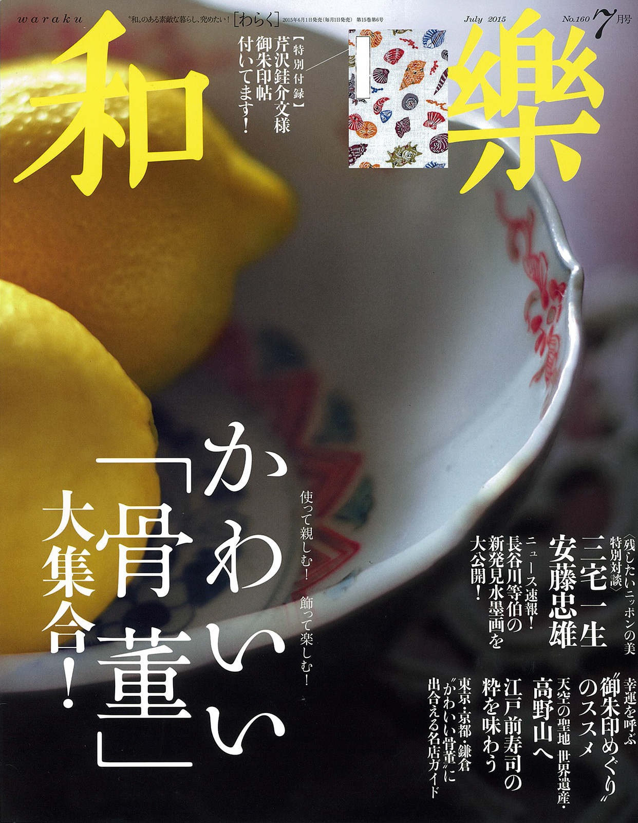 『和樂』に掲載されました 2015.06.04 メディア掲載 小学館発行『和樂 7月号』に榛原の商品が掲載されました。 91頁からの特集「幸運を呼ぶ“御朱印めぐり”のススメ」に、下記の商品をご紹介頂いています。 ・朱印帳 榛原千代紙表紙 松竹梅 黄 ・朱印帳 榛原千代紙表紙 色硝子 赤 ・朱印帳 榛原千代紙表紙 丸紋花づくし ・朱印帳 布表紙 草