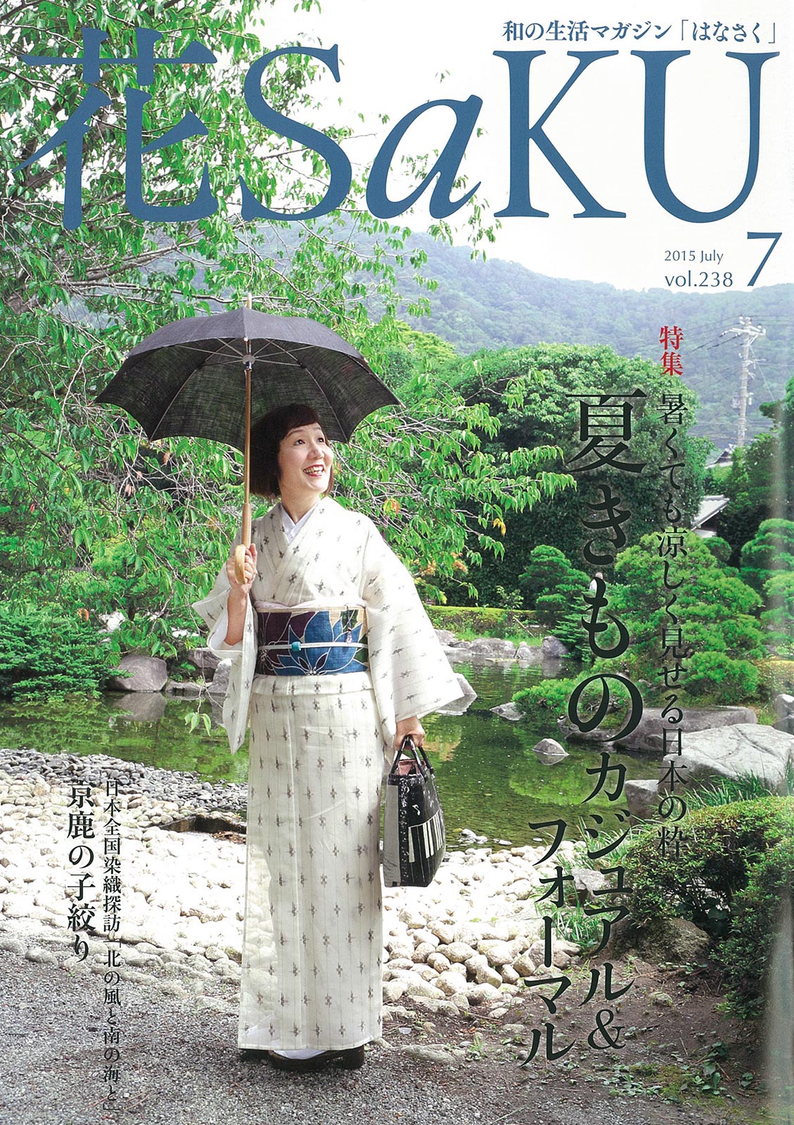 2015年4月号~2016年3月号までの1年間、株式会社PR現代発行「花Saku」の目次で、竹久夢二一筆箋をご紹介頂いています。