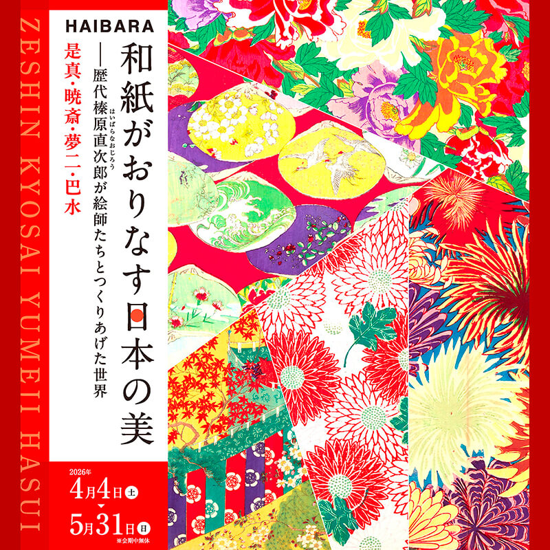 紙と日本の文化を愛し、「生活と芸術を結ぶ」という思いのもと、人々の暮らしに上質な美をもたらしてきた榛原直次郎の歴代の歩みとともに、粋(すい)と技(わざ)を極めた榛原の豊かなコレクションをお楽しみください。