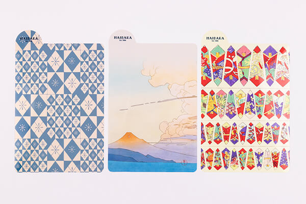 ご好評につき、文様しおりシリーズに「熨斗」「富士遠望」「色硝子」の新柄3柄をご用意いたしました。